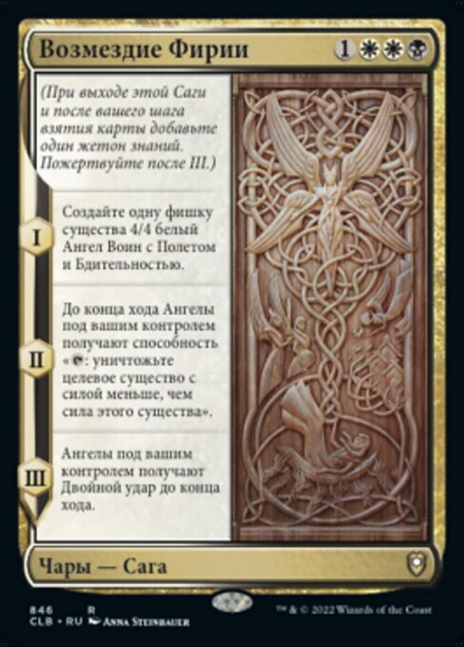 | Rules | (As this Saga enters and after your draw step, add a lore counter. Sacrifice after III.) I — Create a 4/4 white Angel Warrior creature token with flying and vigilance. II — Until end of turn, Angels you control gain ": Destroy target creature with power less than this creature's power." III — Angels you control gain double strike until end of turn. |