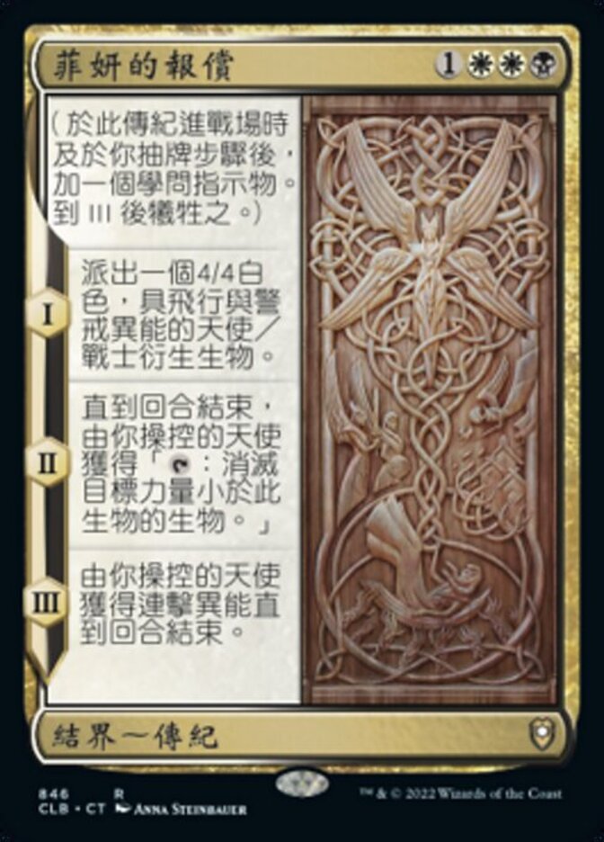| Rules | (As this Saga enters and after your draw step, add a lore counter. Sacrifice after III.) I — Create a 4/4 white Angel Warrior creature token with flying and vigilance. II — Until end of turn, Angels you control gain ": Destroy target creature with power less than this creature's power." III — Angels you control gain double strike until end of turn. |