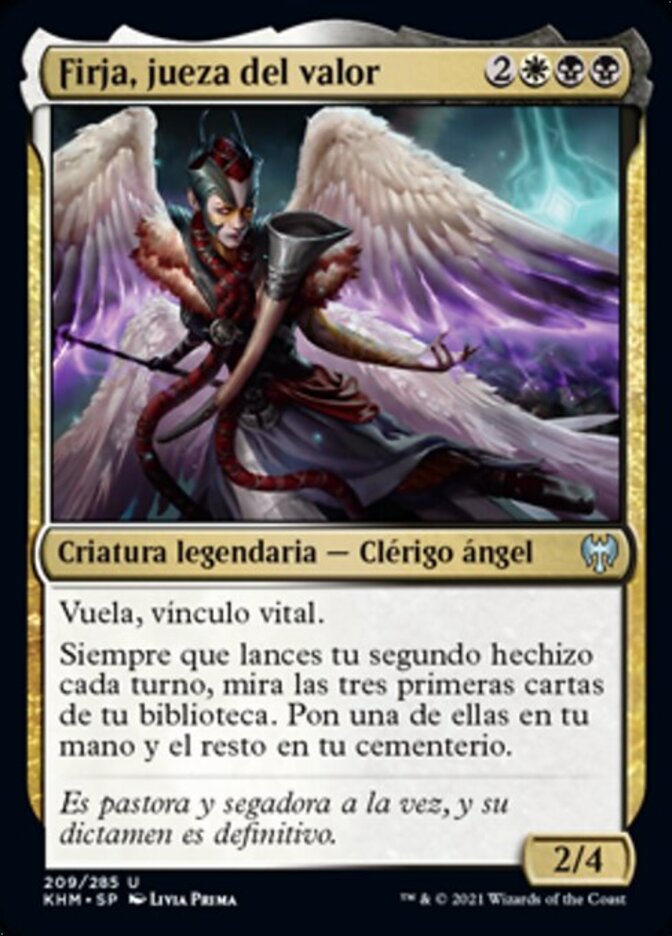 | Rules | Flying, lifelink Whenever you cast your second spell each turn, look at the top three cards of your library. Put one of them into your hand and the rest into your graveyard. |