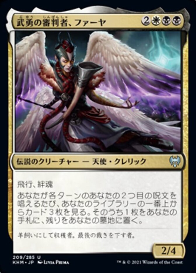 | Rules | Flying, lifelink Whenever you cast your second spell each turn, look at the top three cards of your library. Put one of them into your hand and the rest into your graveyard. |