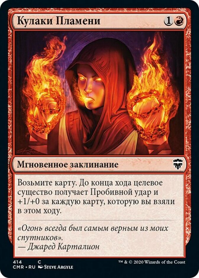 | Rules | Draw a card. Until end of turn, target creature gains trample and gets +1/+0 for each card you've drawn this turn. |