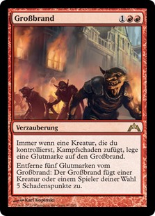 | Rules | Whenever a creature you control deals combat damage, put a blaze counter on Five-Alarm Fire. Remove five blaze counters from Five-Alarm Fire: It deals 5 damage to any target. |