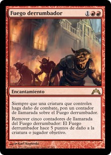 | Rules | Whenever a creature you control deals combat damage, put a blaze counter on Five-Alarm Fire. Remove five blaze counters from Five-Alarm Fire: It deals 5 damage to any target. |