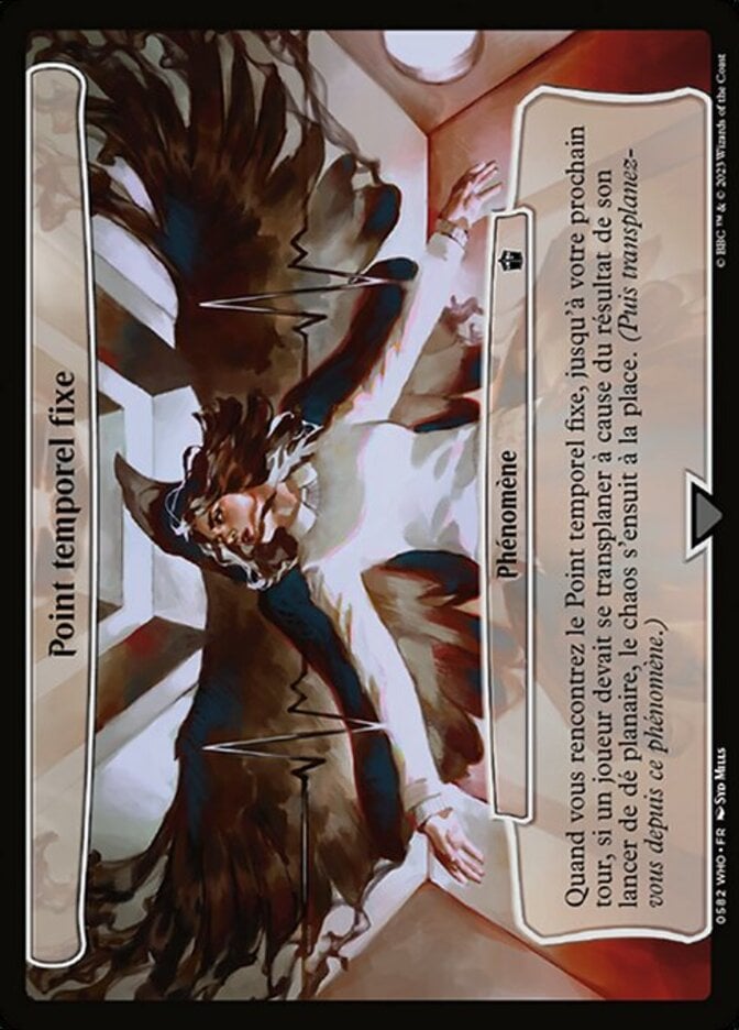 | Rules | When you encounter Fixed Point in Time, until your next turn, if a player would planeswalk as a result of rolling the planar die, chaos ensues instead. (Then planeswalk away from this phenomenon.) |