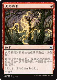 | Rules | Flame Jab deals 1 damage to any target. Retrace (You may cast this card from your graveyard by discarding a land card in addition to paying its other costs.) |