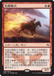 | Rules | Whenever Flamerush Rider attacks, create a token that's a copy of another target attacking creature and that's tapped and attacking. Exile the token at end of combat. Dash (You may cast this spell for its dash cost. If you do, it gains haste, and it's returned from the battlefield to its owner's hand at the beginning of the next end step.) |