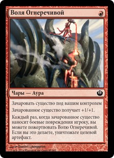 | Rules | Enchant creature you control Enchanted creature gets +1/+1. Whenever enchanted creature deals combat damage to a player, you may sacrifice Flamespeaker's Will. If you do, destroy target artifact. |