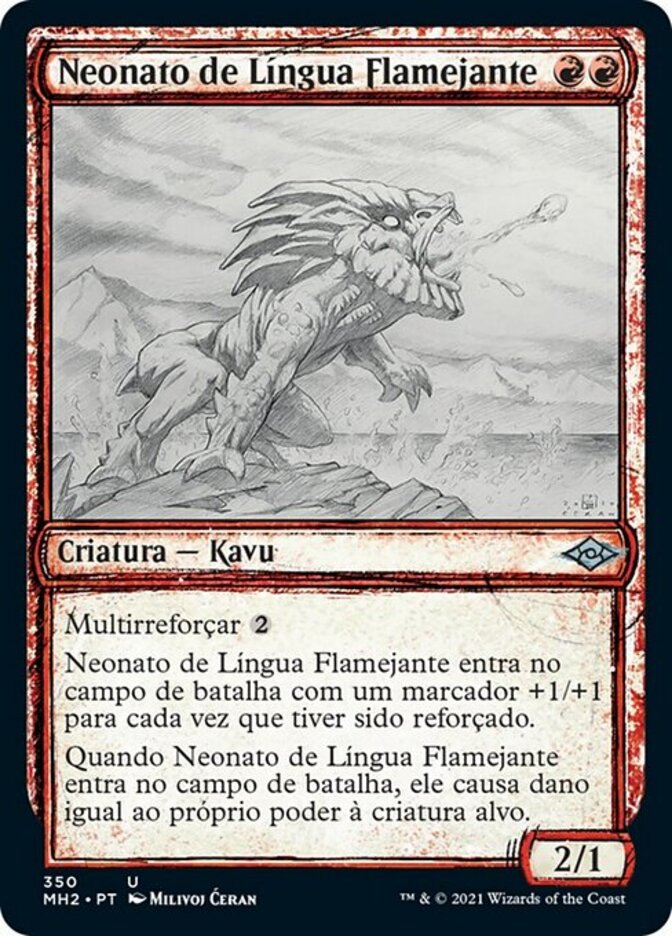 | Rules | Multikicker (You may pay an additional any number of times as you cast this spell.) Flametongue Yearling enters the battlefield with a +1/+1 counter on it for each time it was kicked. When Flametongue Yearling enters the battlefield, it deals damage equal to its power to target creature. |