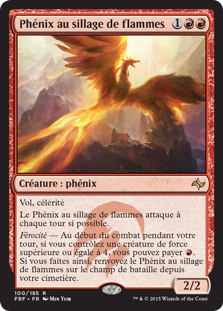 | Rules | Flying, haste Flamewake Phoenix attacks each combat if able. Ferocious — At the beginning of combat on your turn, if you control a creature with power 4 or greater, you may pay . If you do, return Flamewake Phoenix from your graveyard to the battlefield. |