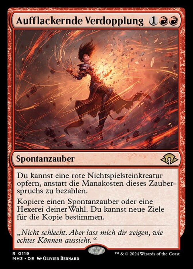 | Rules | You may sacrifice a nontoken red creature rather than pay this spell's mana cost. Copy target instant or sorcery spell. You may choose new targets for the copy. |