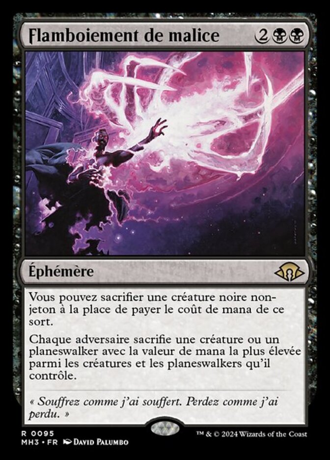 | Rules | You may sacrifice a nontoken black creature rather than pay this spell's mana cost. Each opponent sacrifices a creature or planeswalker with the greatest mana value among creatures and planeswalkers they control. |