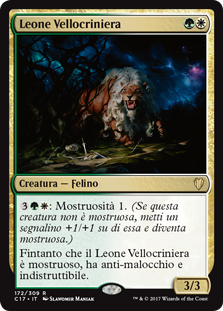 | Rules | : Monstrosity 1. (If this creature isn't monstrous, put a +1/+1 counter on it and it becomes monstrous.) As long as Fleecemane Lion is monstrous, it has hexproof and indestructible. |
