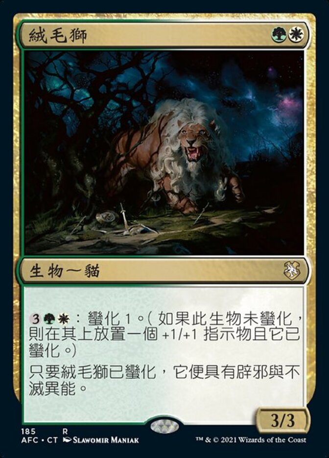 | Rules | : Monstrosity 1. (If this creature isn't monstrous, put a +1/+1 counter on it and it becomes monstrous.) As long as Fleecemane Lion is monstrous, it has hexproof and indestructible. |