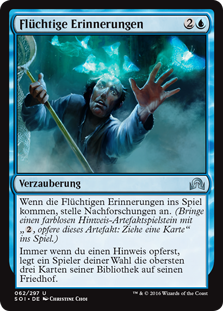 | Rules | When Fleeting Memories enters the battlefield, investigate. (Create a colorless Clue artifact token with ", Sacrifice this artifact: Draw a card.") Whenever you sacrifice a Clue, target player mills three cards. |