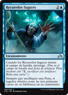 | Rules | When Fleeting Memories enters the battlefield, investigate. (Create a colorless Clue artifact token with ", Sacrifice this artifact: Draw a card.") Whenever you sacrifice a Clue, target player mills three cards. |