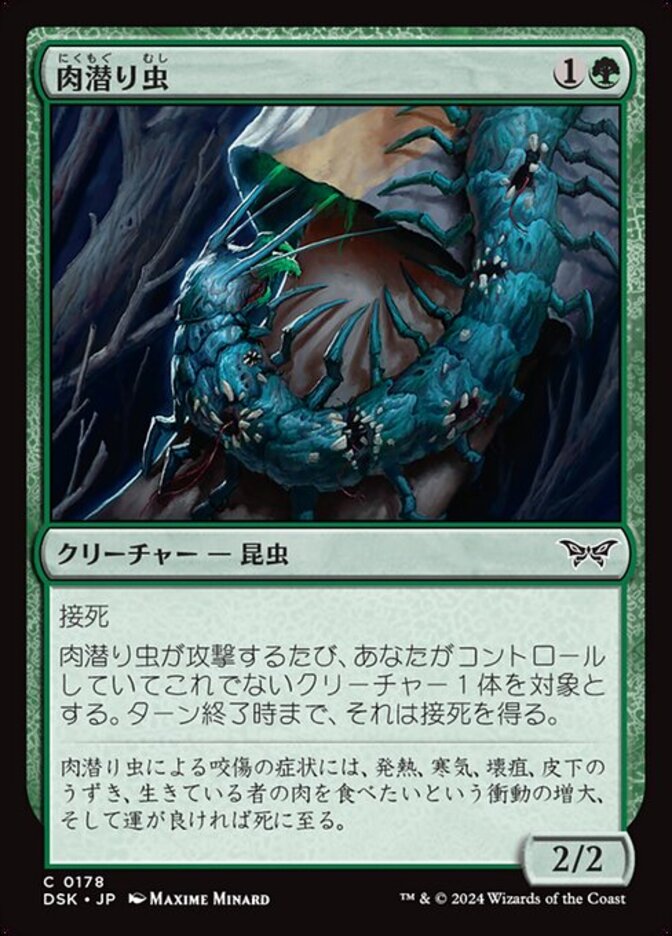 | Rules | Deathtouch Whenever Flesh Burrower attacks, another target creature you control gains deathtouch until end of turn. |