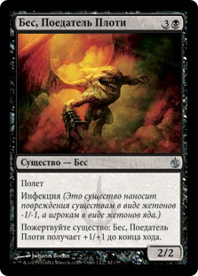 | Rules | Flying Infect (This creature deals damage to creatures in the form of -1/-1 counters and to players in the form of poison counters.) Sacrifice a creature: Flesh-Eater Imp gets +1/+1 until end of turn. |
