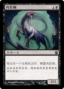 | Rules | Whenever another creature dies, tap Fleshmad Steed. |