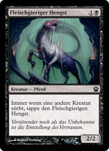 | Rules | Whenever another creature dies, tap Fleshmad Steed. |