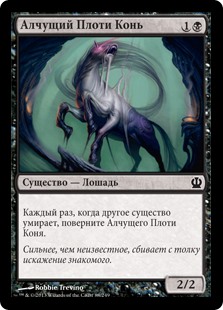 | Rules | Whenever another creature dies, tap Fleshmad Steed. |