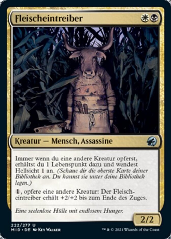 | Rules | Whenever you sacrifice another creature, you gain 1 life and scry 1. (Look at the top card of your library. You may put that card on the bottom of your library.) , Sacrifice another creature: Fleshtaker gets +2/+2 until end of turn. |
