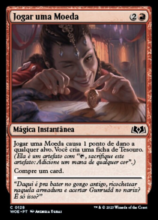 | Rules | Flick a Coin deals 1 damage to any target. You create a Treasure token. (It's an artifact with ", Sacrifice this artifact: Add one mana of any color.") Draw a card. |