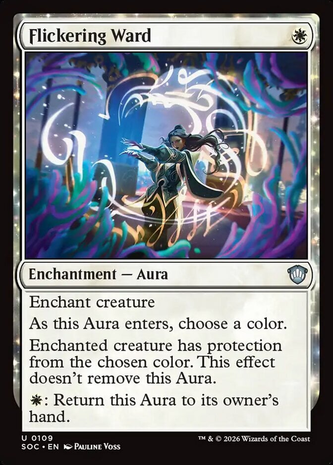 | Rules | Enchant creature As Flickering Ward enters the battlefield, choose a color. Enchanted creature has protection from the chosen color. This effect doesn't remove Flickering Ward. : Return Flickering Ward to its owner's hand. |