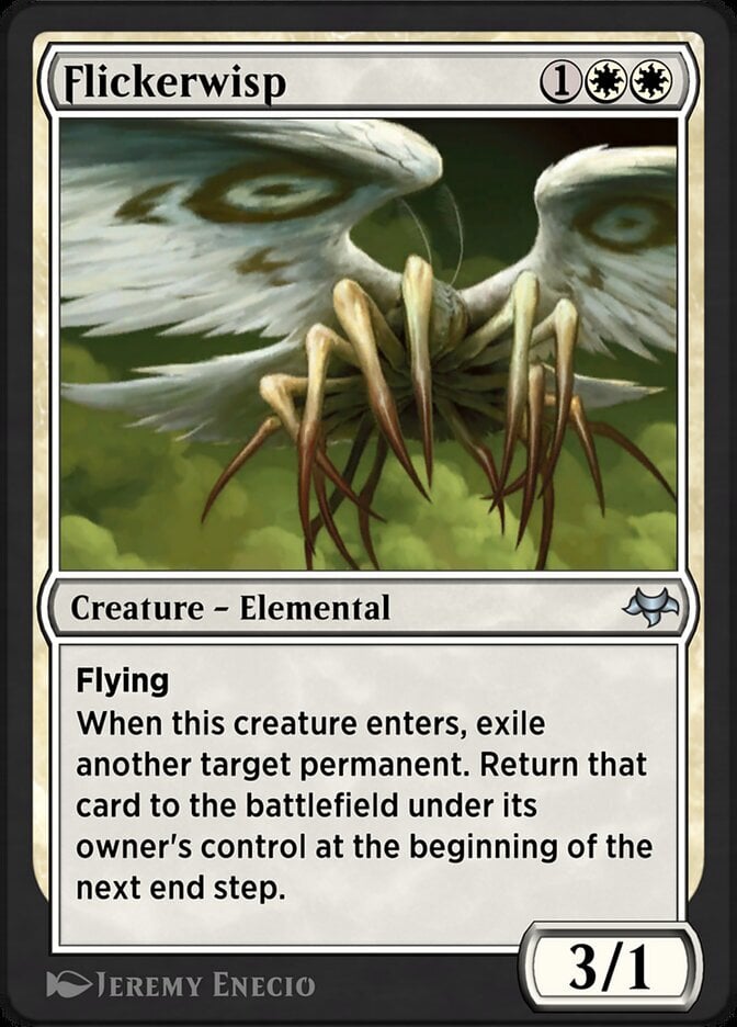 | Rules | Flying When Flickerwisp enters the battlefield, exile another target permanent. Return that card to the battlefield under its owner's control at the beginning of the next end step. |