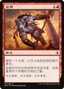 | Rules | As an additional cost to cast this spell, sacrifice a creature. Fling deals damage equal to the sacrificed creature's power to any target. |
