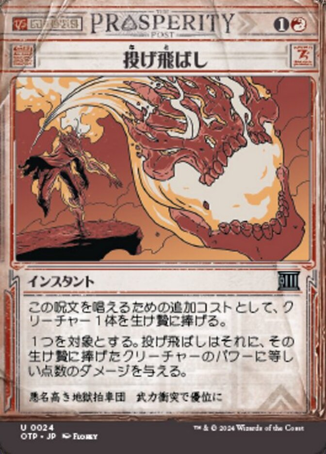 | Rules | As an additional cost to cast this spell, sacrifice a creature. Fling deals damage equal to the sacrificed creature's power to any target. |