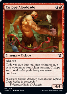 | Rules | Reach Whenever two or more creatures your opponents control attack, Flummoxed Cyclops can't block this combat. |