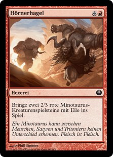 | Rules | Create two 2/3 red Minotaur creature tokens with haste. |
