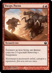 | Rules | Create two 2/3 red Minotaur creature tokens with haste. |