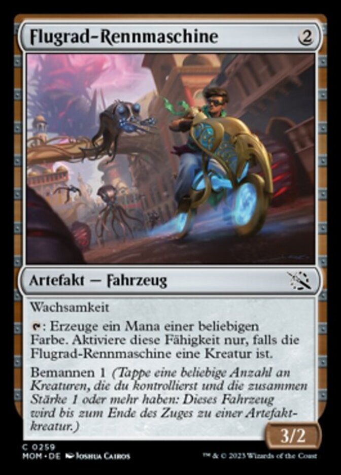 | Rules | Vigilance : Add one mana of any color. Activate only if Flywheel Racer is a creature. Crew 1 (Tap any number of creatures you control with total power 1 or more: This Vehicle becomes an artifact creature until end of turn.) |