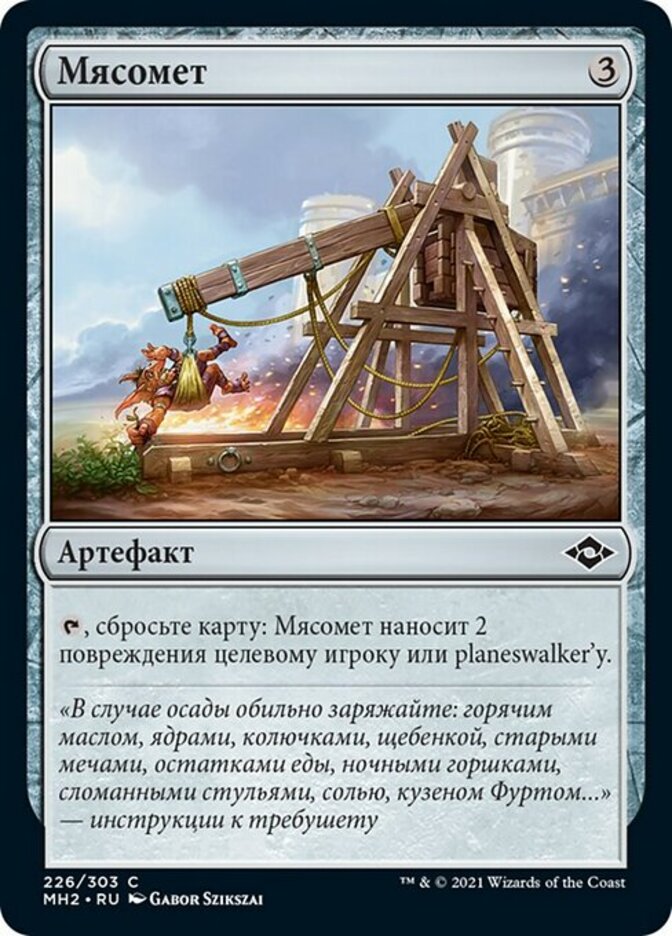 | Flavor | "In event of siege, load copiously with: hot oil, cannonballs, caltrops, rubble, old swords, mess-hall leftovers, chamber pots, broken chairs, salt, cousin Furt . . ." —Trebuchet instructions |