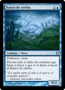 | Rules | Defender, flying Prevent all combat damage that would be dealt to and dealt by Fog Bank. |