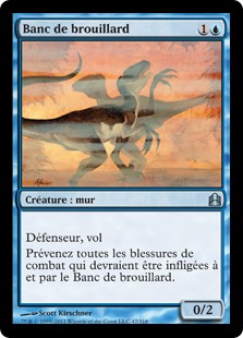 | Rules | Defender, flying Prevent all combat damage that would be dealt to and dealt by Fog Bank. |