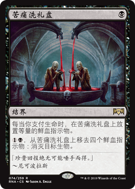 | Rules | Whenever you pay life, put that many blood counters on Font of Agonies. , Remove four blood counters from Font of Agonies: Destroy target creature. |