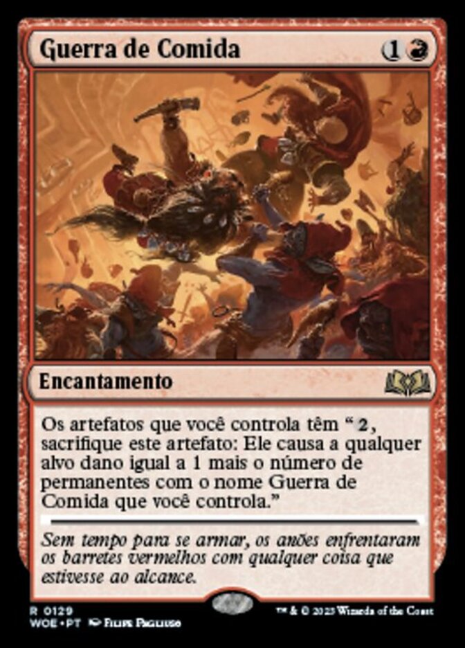 | Rules | Artifacts you control have ", Sacrifice this artifact: It deals damage to any target equal to 1 plus the number of permanents named Food Fight you control." |