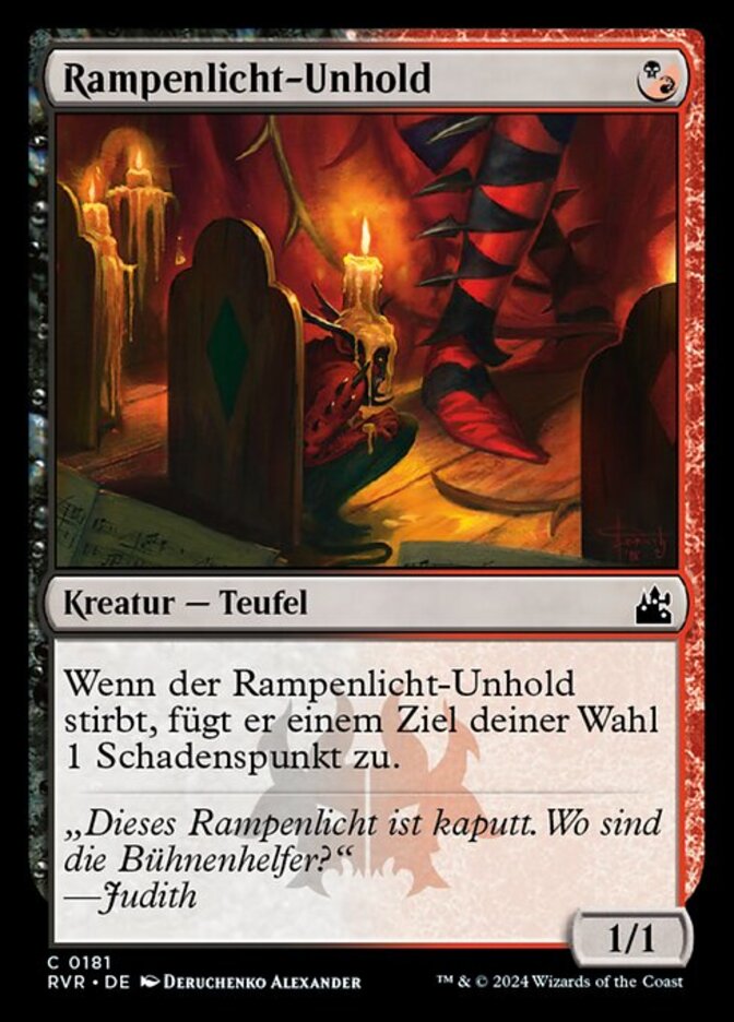 | Rules | When Footlight Fiend dies, it deals 1 damage to any target. |