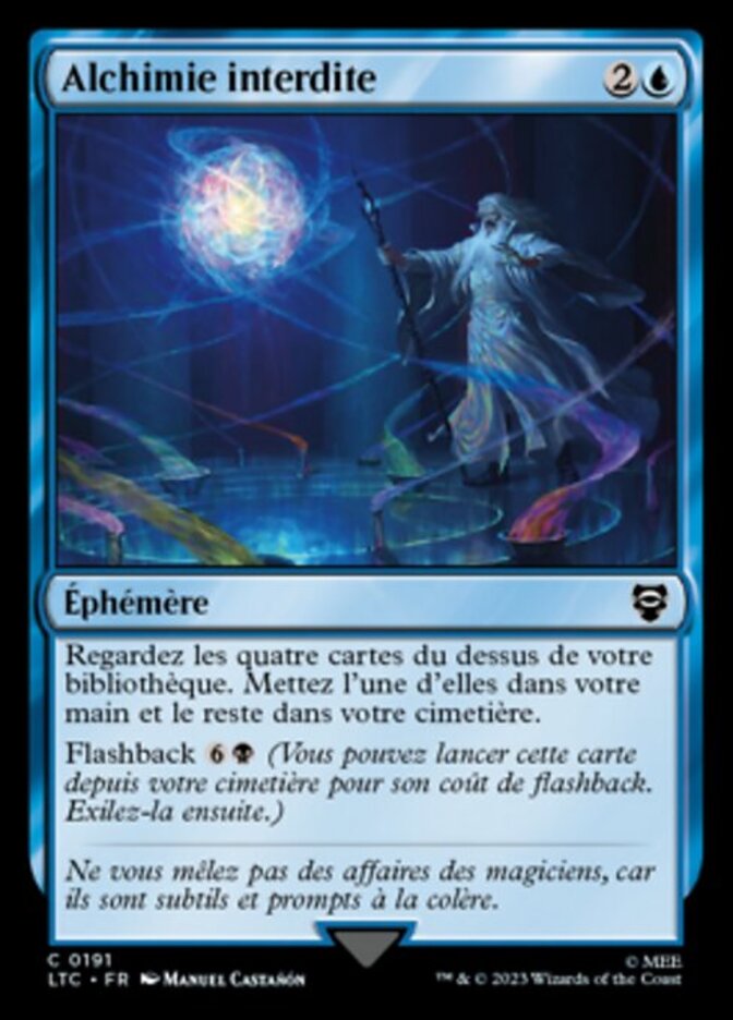 | Rules | Look at the top four cards of your library. Put one of them into your hand and the rest into your graveyard. Flashback (You may cast this card from your graveyard for its flashback cost. Then exile it.) |