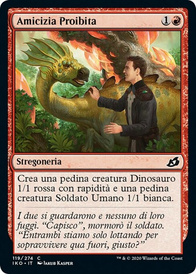 | Rules | Create a 1/1 red Dinosaur creature token with haste and a 1/1 white Human Soldier creature token. |