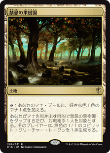 | Rules | : Add one mana of any color. Whenever you tap Forbidden Orchard for mana, target opponent creates a 1/1 colorless Spirit creature token. |