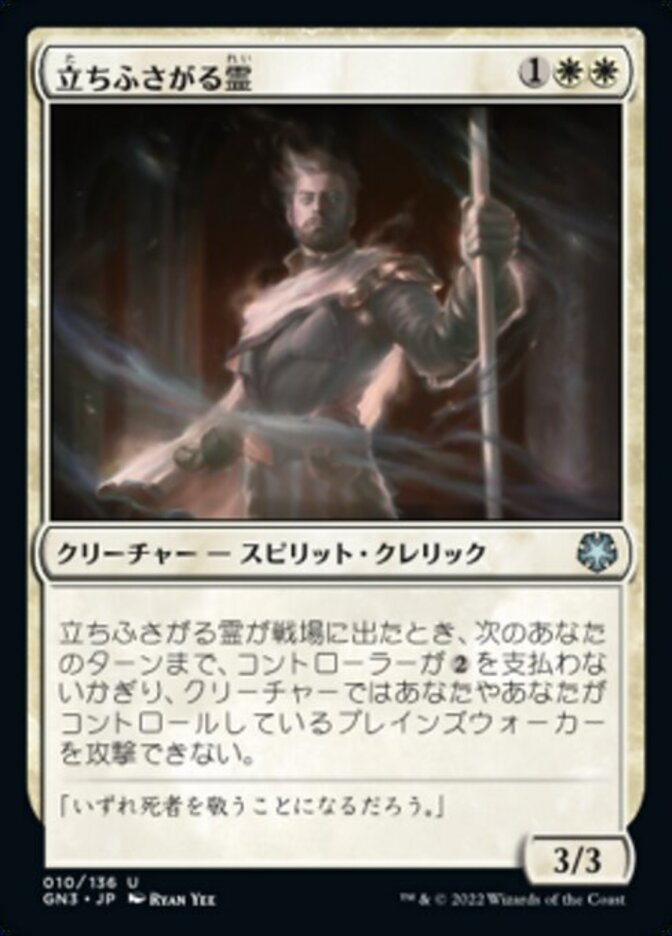 | Rules | When Forbidding Spirit enters the battlefield, until your next turn, creatures can't attack you or planeswalkers you control unless their controller pays for each of those creatures. |