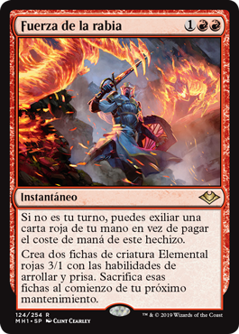 | Rules | If it's not your turn, you may exile a red card from your hand rather than pay this spell's mana cost. Create two 3/1 red Elemental creature tokens with trample and haste. Sacrifice those tokens at the beginning of your next upkeep. |