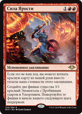 | Rules | If it's not your turn, you may exile a red card from your hand rather than pay this spell's mana cost. Create two 3/1 red Elemental creature tokens with trample and haste. Sacrifice those tokens at the beginning of your next upkeep. |
