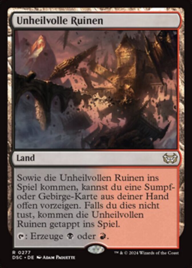 | Rules | As Foreboding Ruins enters the battlefield, you may reveal a Swamp or Mountain card from your hand. If you don't, Foreboding Ruins enters the battlefield tapped. : Add or . |