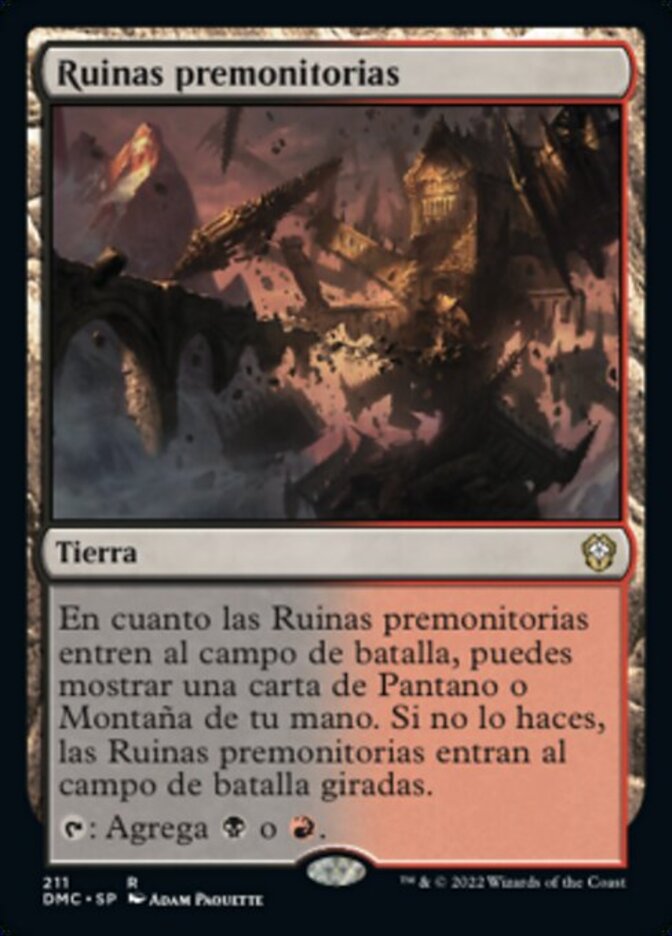 | Rules | As Foreboding Ruins enters the battlefield, you may reveal a Swamp or Mountain card from your hand. If you don't, Foreboding Ruins enters the battlefield tapped. : Add or . |
