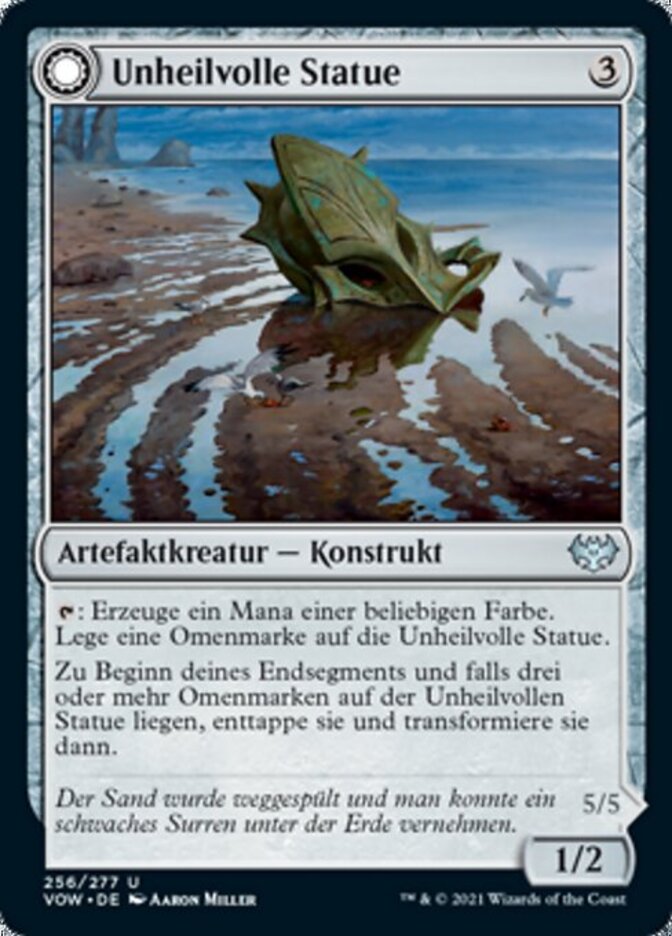 | Rules | : Add one mana of any color. Put an omen counter on Foreboding Statue. At the beginning of your end step, if there are three or more omen counters on Foreboding Statue, untap it, then transform it. // At the beginning of your precombat main phase, add one mana of any color. |