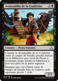 | Rules | When Forerunner of the Coalition enters the battlefield, you may search your library for a Pirate card, reveal it, then shuffle and put that card on top. Whenever another Pirate enters the battlefield under your control, each opponent loses 1 life. |